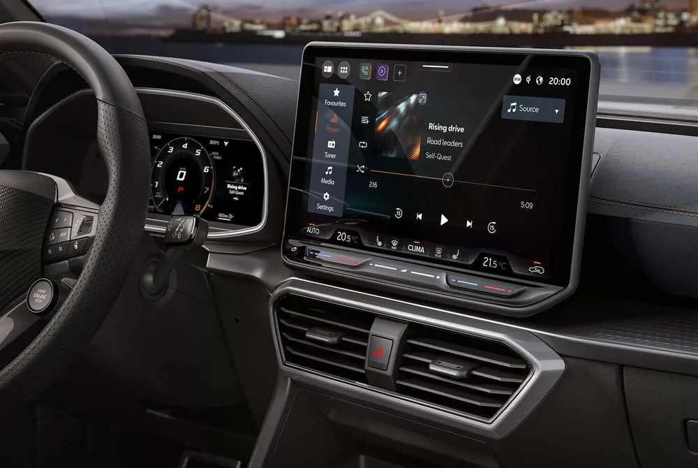 La historia de CUPRA Formentor VZ va por el mismo camino, con un equipamiento muy similar al de las versiones superiores. En ambos vehículos se encuentra el cuadro de instrumentos digital de 10.25”, pantalla táctil de 12.9” con cámara de reversa y conectividad inalámbrica, freno de mano electrónico, climatizador, cargador inductivo, etc.